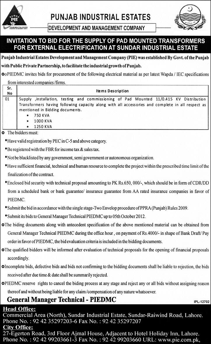 Job ins Punjab industrail Estate Publised in Express ibs 18-09-12