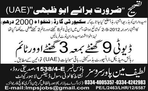 Wanted security Staff for UAE Published in Epxress isb 18-09-12